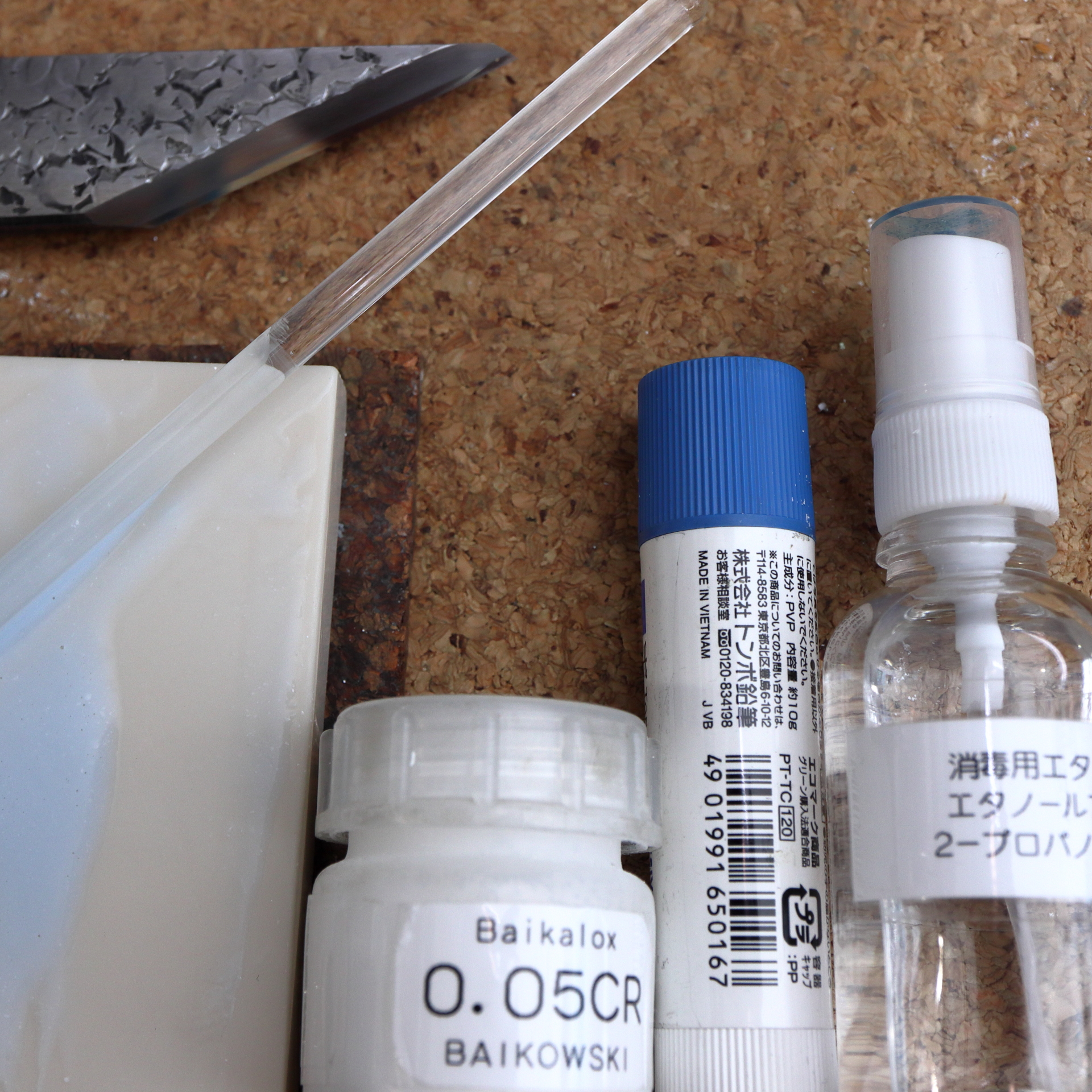 After returning home, I was looking for a better way to disperse the 0.05 CR alumina powder when my eyes fell on a dried-out "Kieiro Pit" glue stick.