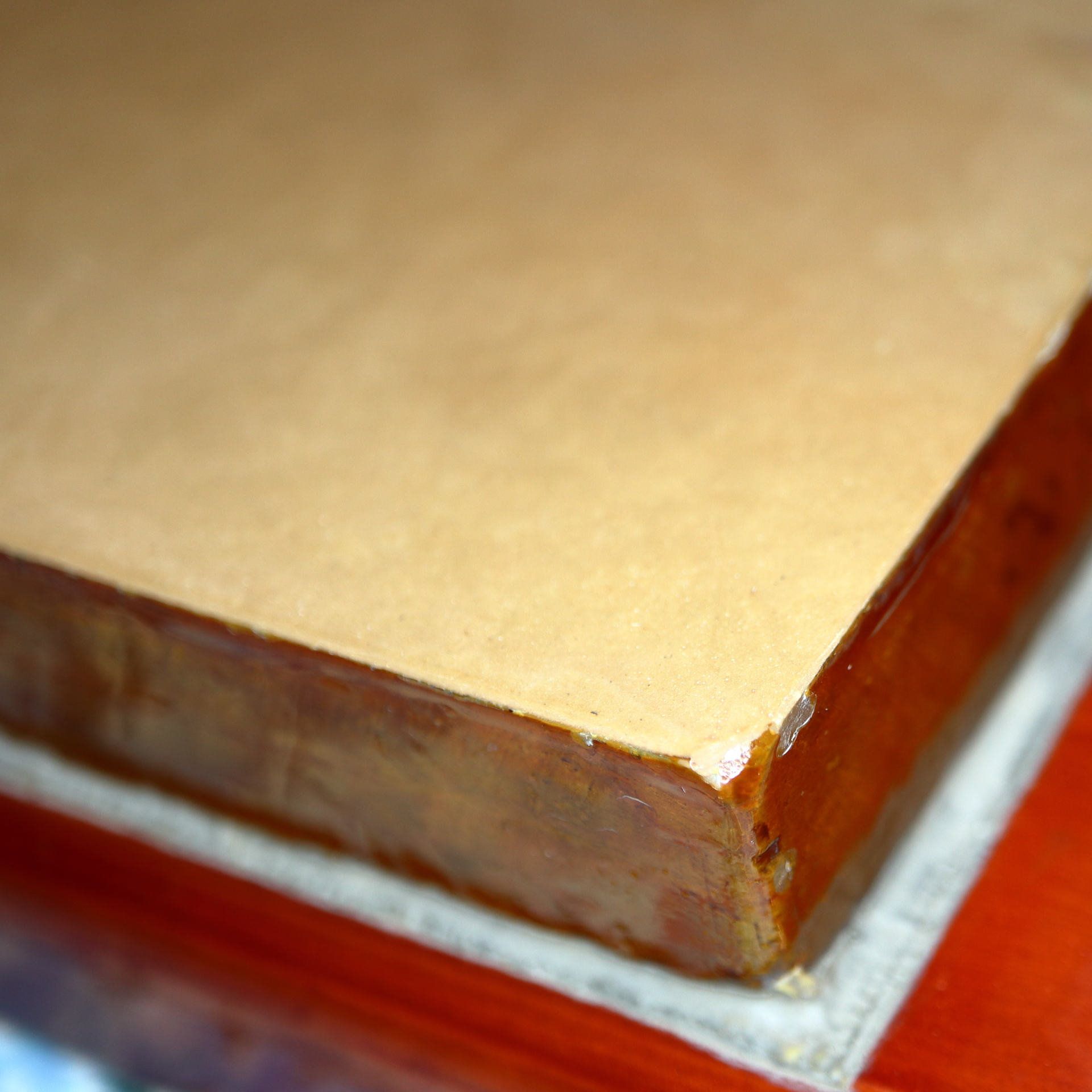 I was excited. I spread the Kieiro Pit glue on an acrylic plate and kneaded it with about 50 parts of purified water until the color disappeared. As the atmospheric carbon dioxide neutralized the solution, I added a spatula-full of the Ra = 50 nm Baikalox 0.05 CR alumina powder, along with a small amount of isopropyl alcohol to act as a defoaming agent and viscosity modifier. I continued to knead the mixture into a smooth, thick slurry. The nano-polishing slurry was complete.