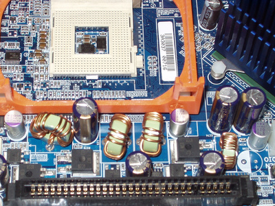ついでにノースブリッジまわりのケミコンも 6SEP470 に交換したが、