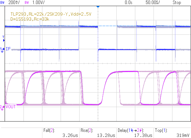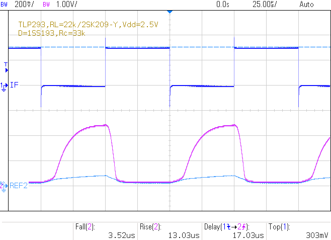 |  Vdd=2.5V, If=303uA, 10kHz, (Ic≤189uA) tf=3.52us, tr=13.03us, td=17.03us |