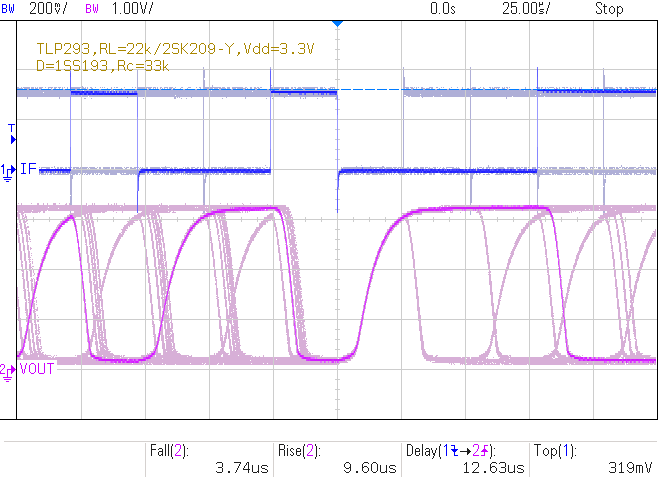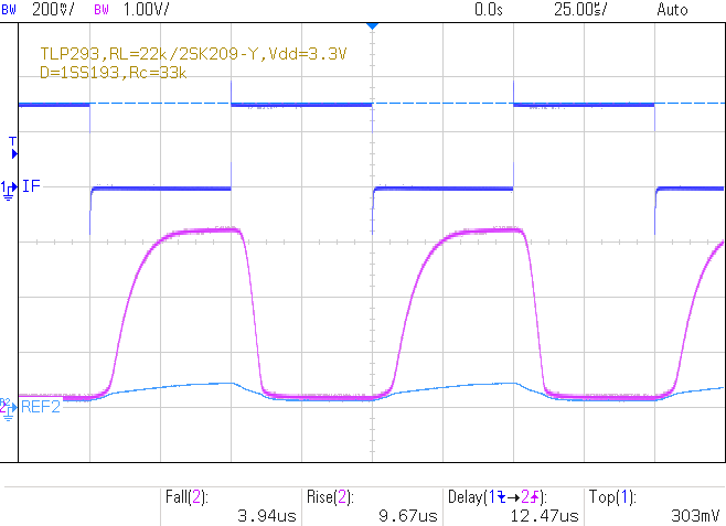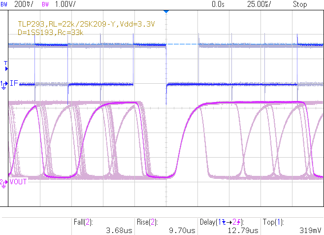 |  Vdd=3.3V, If=303uA, 10kHz, (Ic≤250uA) tf=3.52us, tr=9.90us, td=12.76us |