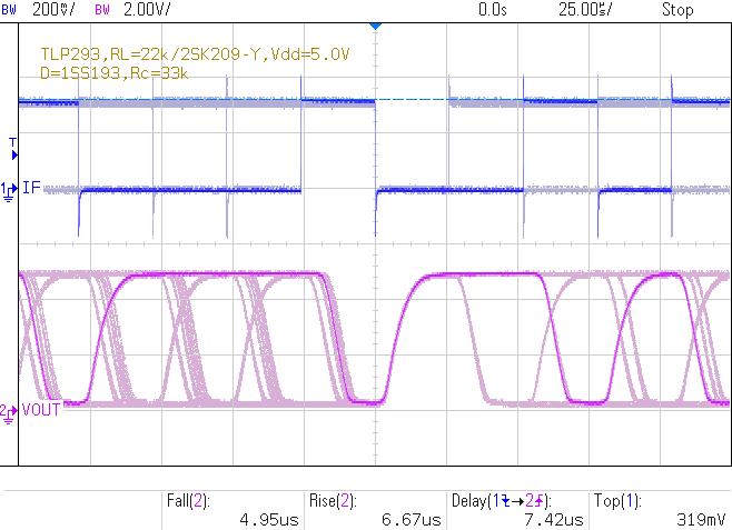 |  Vdd=5.0V, If=319uA, 38.4kbps, (Ic≤380uA) tf=4.95us, tr=6.67us, td=7.42us |