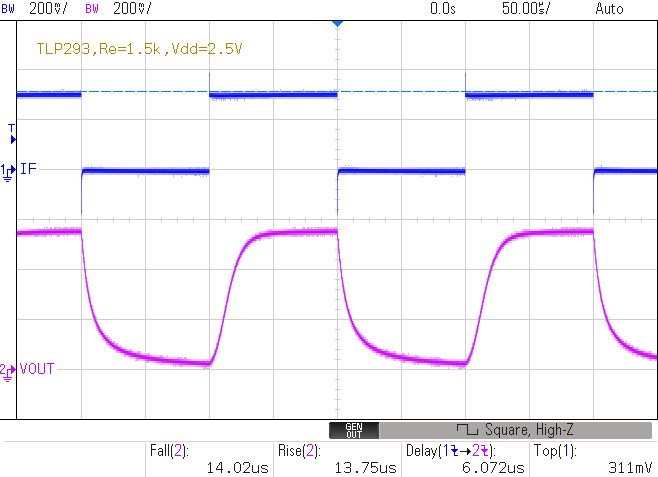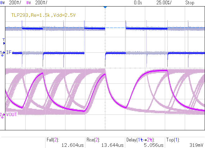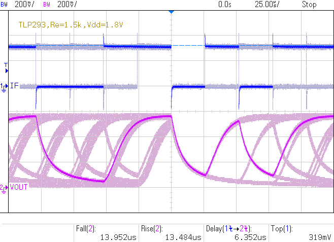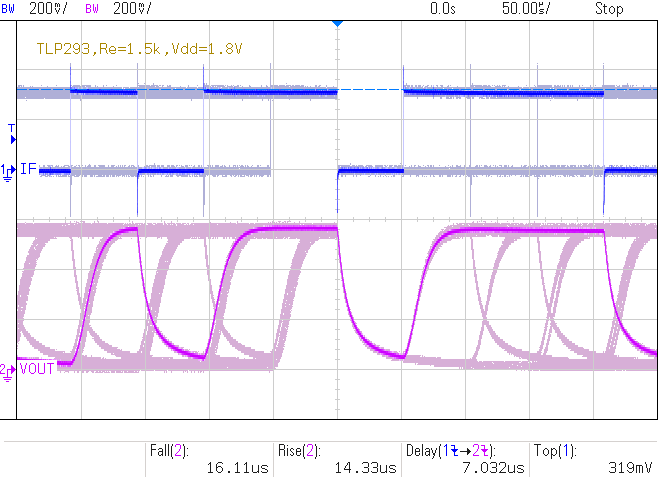 過渡応答特性試験回路 Vdd=2.5V, If=311uA, (Ie=367uA), 10kbps Vdd=1.8V, If=319uA, (Ie=373uA), 19.2kbps Vdd=1.8V, If=319uA, (Ie=373uA), 38.4kbps Vdd=2.5V, If=319uA, (Ie=387uA), 38.4kbps