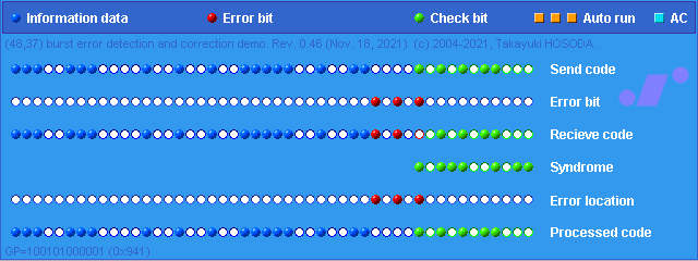 - タイトル部分をクリックすると Information data とバースト誤りがランダムに変更されます。