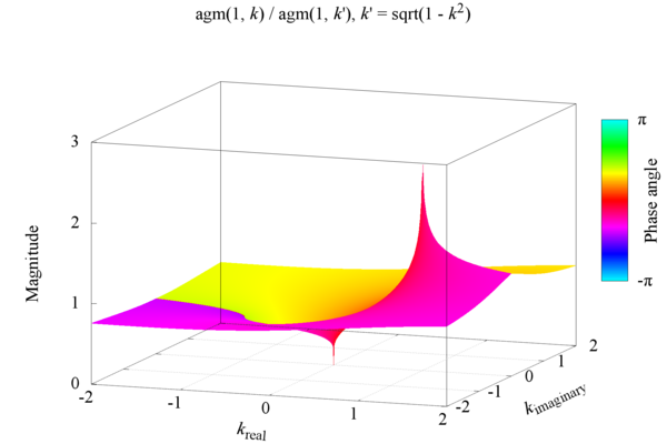 Exact formulaEquation for the ratio of the complete elliptic integral of the first kind and the ratio of the arithmetic-geometric mean.