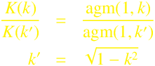#Speed measurement for 10000000 iterations. #agm(1, k) / agm(1, k') : 102 [utics] #Hilberg's approximation: 230 [utics]