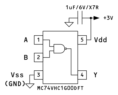 例) 実際の NAND ロジック IC (Integrated Circuit) MC74VHC1G00 の例
