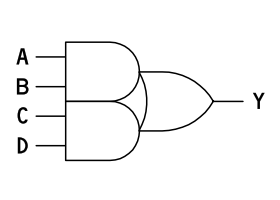 Y = ((A & B) #(C & D))のように AND による積を OR で足した形式を積和形式と呼びます。