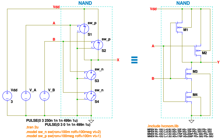 NAND ゲートのシミュレーション回路例