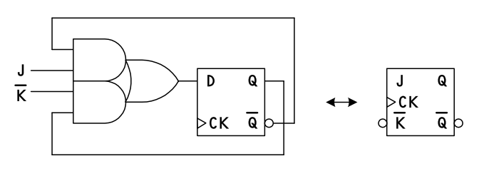 個別の JK-FF の IC が使われることは稀ですが、ASIC や CPLD などの内部で シーケンサ(順序回路)を構成するときのモデルとして JK-FF はしばしば使われています。