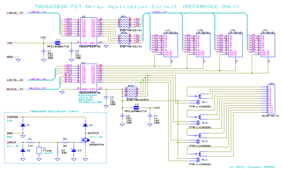 DMOS-FET アレイ TBD62083A の応用回路例 (参考)