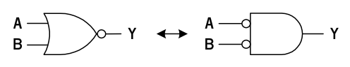 入出力とも負論理の AND は正論理の OR である。