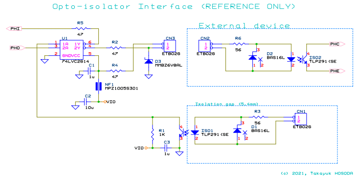 U1 は 3.3V 系の CMOS ロジックIC や FPGA から駆動されることを想定しています。