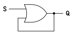 SR-FF(A, B) はセットされた状態になると同時に SR-FF(C, D) をリセットし続けることになります。