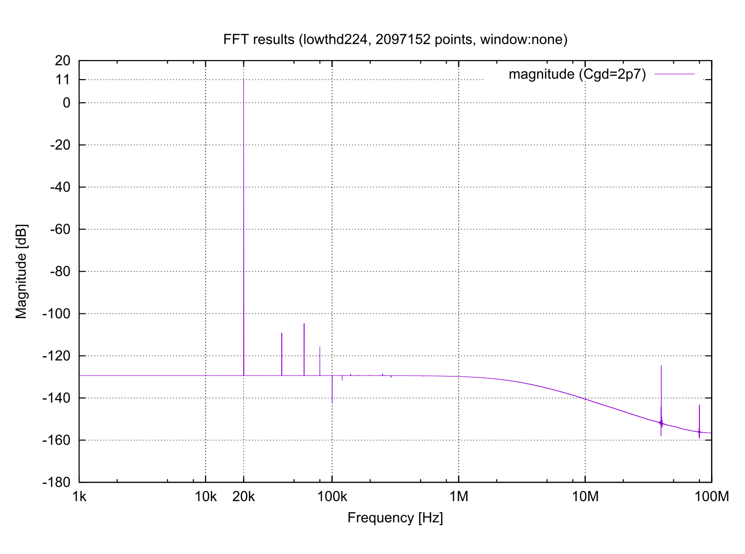 FFT スペクトラム (.tran 0 10.5m 0 25n)