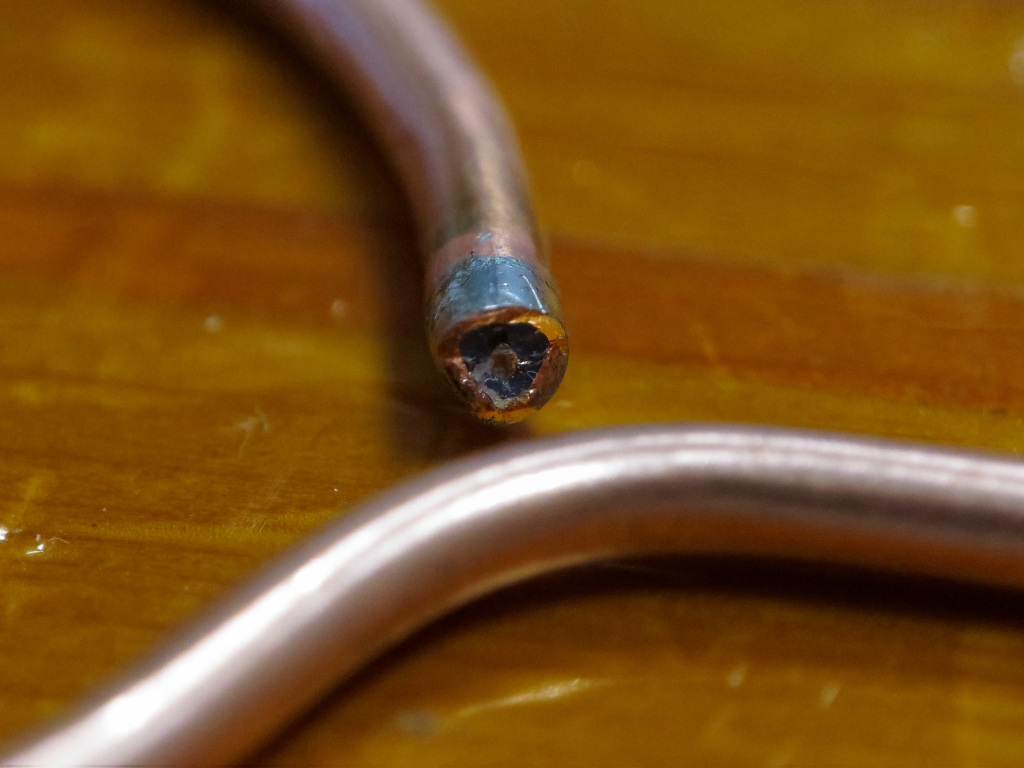 Semi-rigid cables are bent and shaped into loops with an internal diameter of about 14 mm, and the outer conductors at the cable end are connected to each other by soldering.
