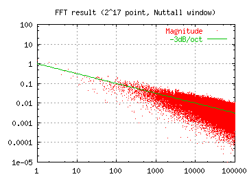 Fig.4 出力波形例 Fig.5 出力のFFT例 (217ポイント Nuttall 窓*note1) Download PinkNoise Demo [5kB, Java Web Start]