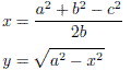 ABCXY - Rev.1.00 : Aug. 1 2011 00 { 116-Byte Prgm } 01 LBL "ABCXY" 02 MVAR "A" 03 MVAR "B" 04 MVAR "C" 05 MVAR "X" 06 MVAR "Y" 07 VARMENU "ABCXY" 08 STOP 09 EXITALL 10 RCL "A" 11 X↑2 12 ENTER 13 ENTER 14 RCL "B" 15 X↑2 16 + 17 RCL "C" 18 X↑2 19 - 20 RCL "B" 21 ENTER 22 + 23 ÷ 24 STO "X" 25 X↑2 26 - 27 SQRT 28 STO "Y" 29 RCL "X" 30 →POL 31 CLA 32 DEG 33 FIX 03 34 "x=" 35 ARCL "X" 36", y=" 37 ARCL "Y" 38