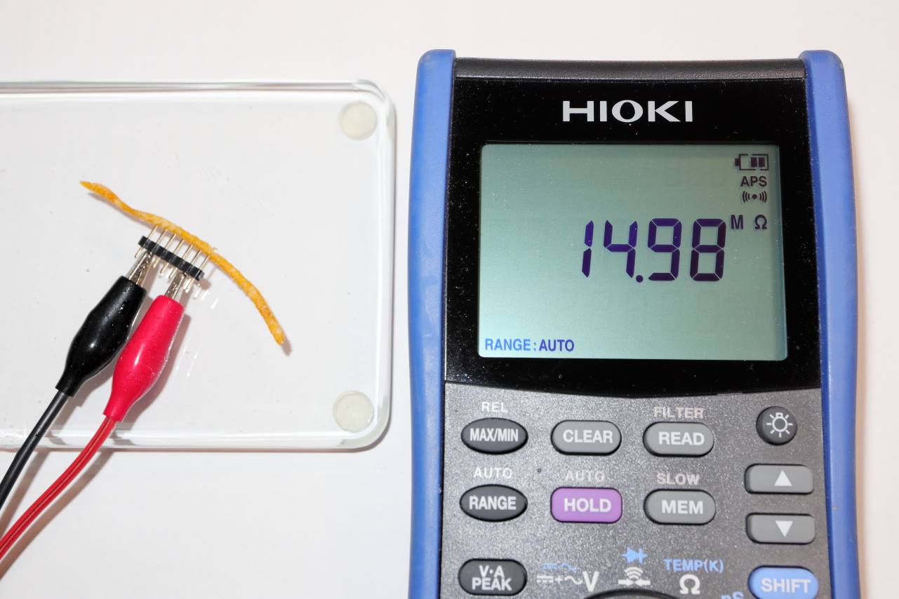 「カラムーチョの導電性もヨロ。」とリクエストがあって、33年後の今日、カラムーチョの導電性を測ってみたのだった。
