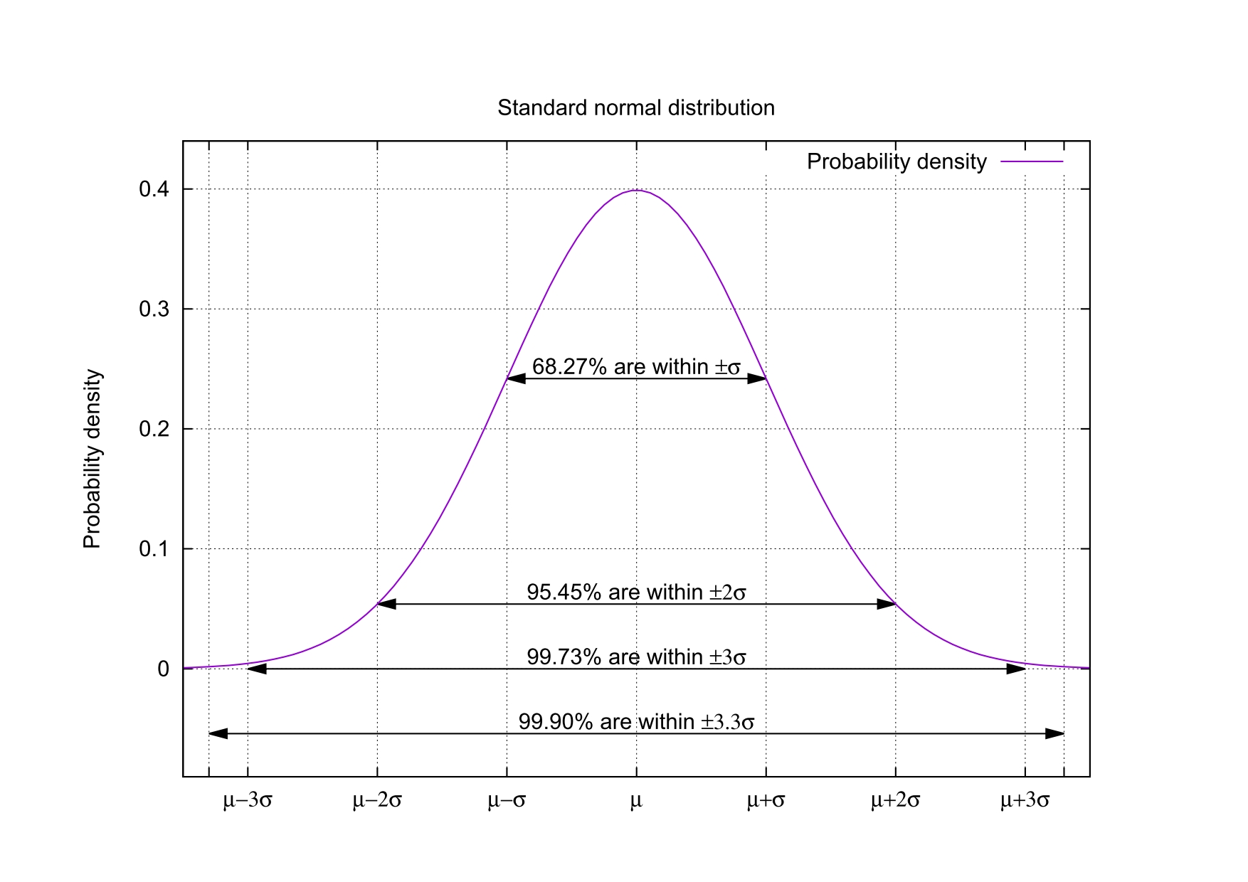 set label 3 "99.73% are within {/Symbol \2613s}" at 0, 0.01, 0